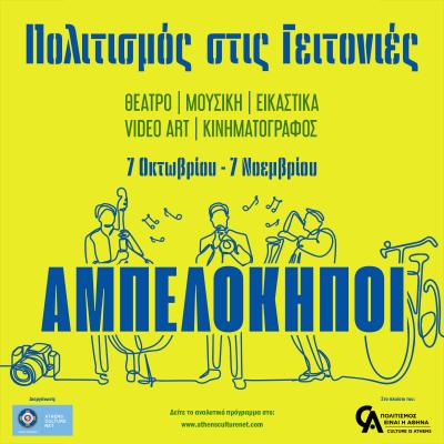 3η στάση στους Αμπελόκηπους και στην ευρύτερη περιοχή τους, κάνει το πρόγραμμα του Athens Culture Net του δήμου Αθηναίων, Πολιτισμός στις Γειτονιές, από τις 7 Οκτωβρίου έως τις 7 Νοεμβρίου, μετά από δύο επιτυχημένους κύκλους δράσεων, τον Μάιο στην Κυψέλη και τον Ιούνιο στο Παγκράτι, που βρήκαν θερμή ανταπόκριση από κατοίκους και επισκέπτες, κάθε ηλικίας.